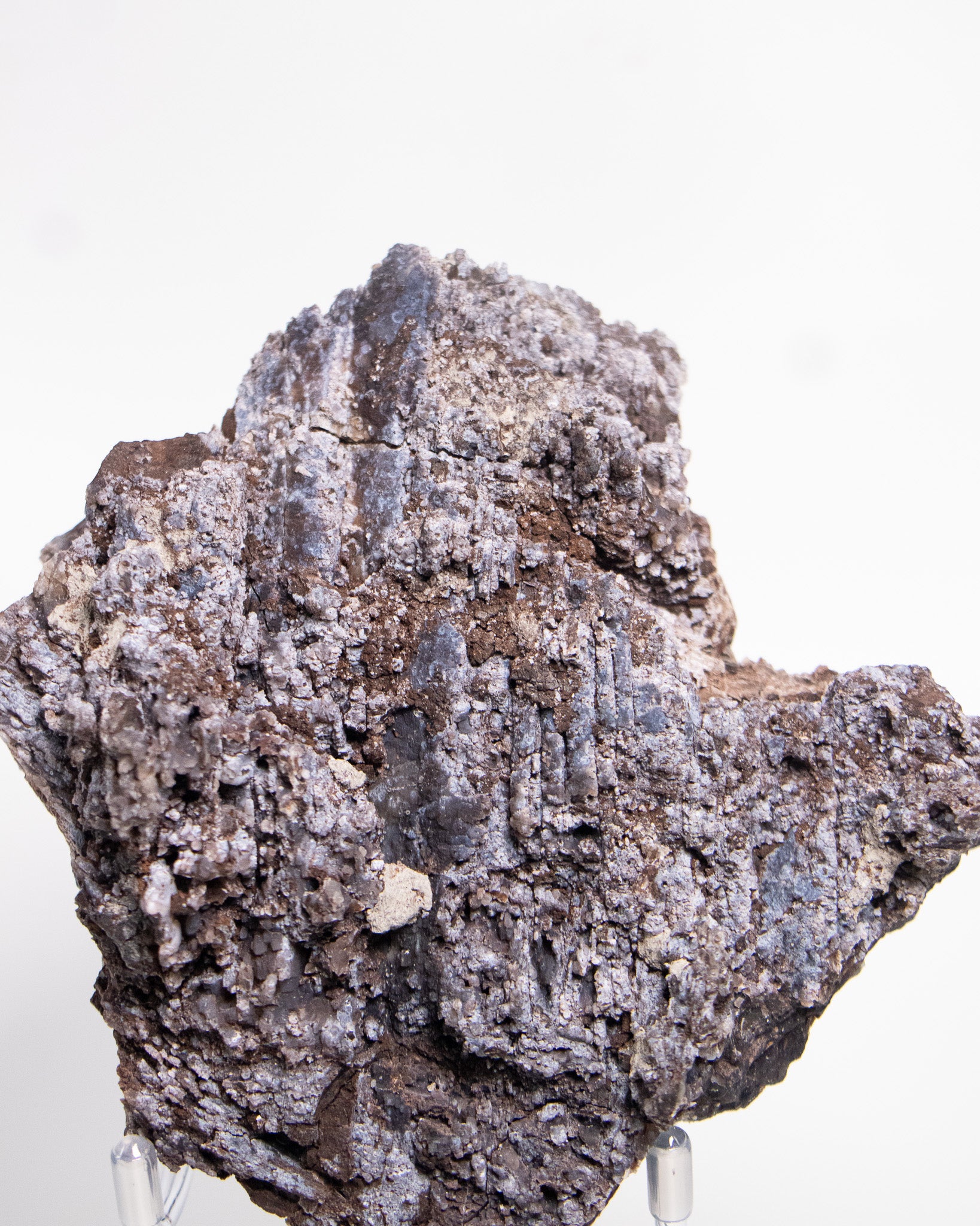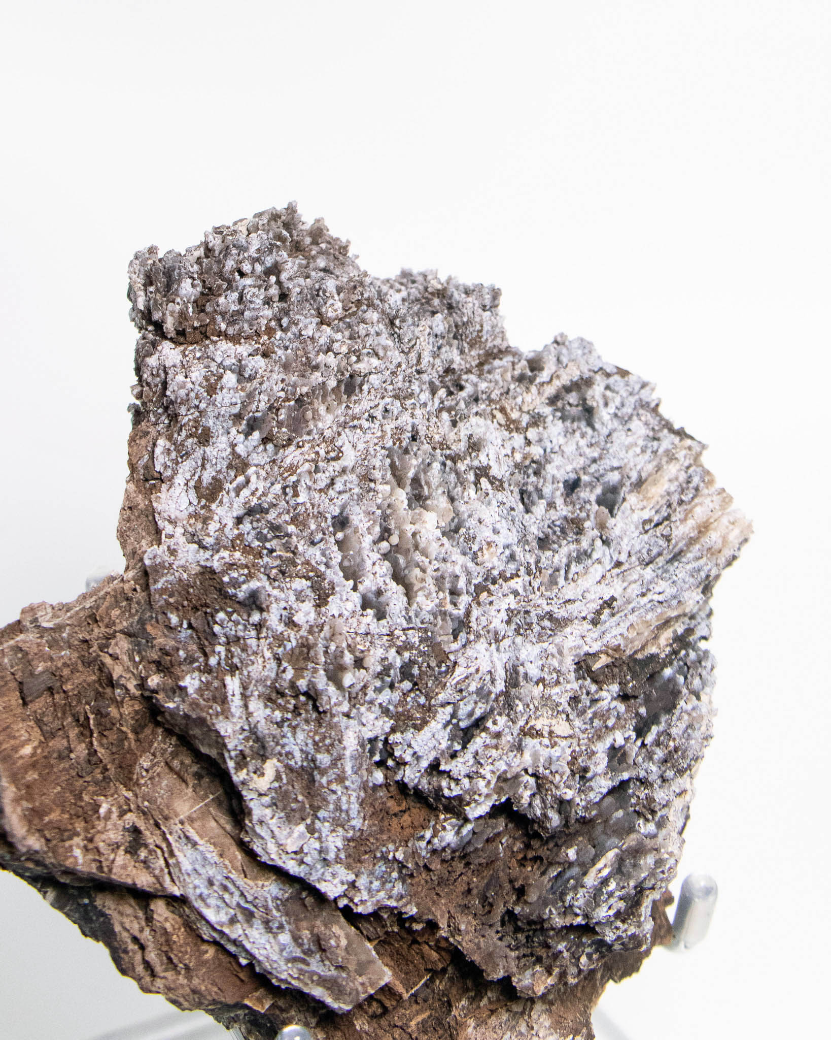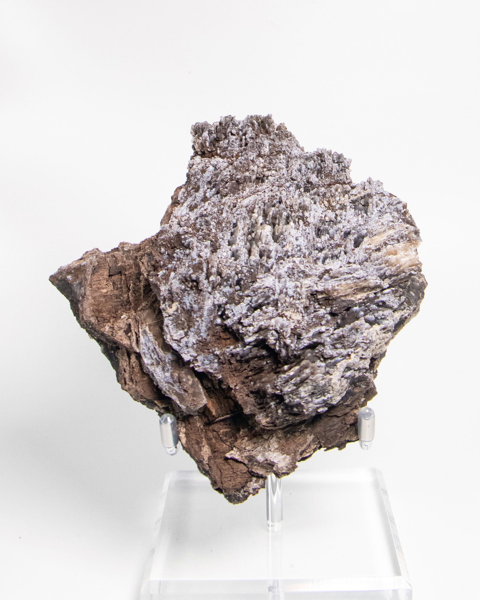 來自阿爾卑斯的木化石,屬於十分罕見的標本,經過數百萬年的礦化,矽化的木頭伴隨藍色玉髓結晶,隨著木質紋理起伏,保留了原本的生命波紋。深藍與深褐色交織出沈穩的氣質。