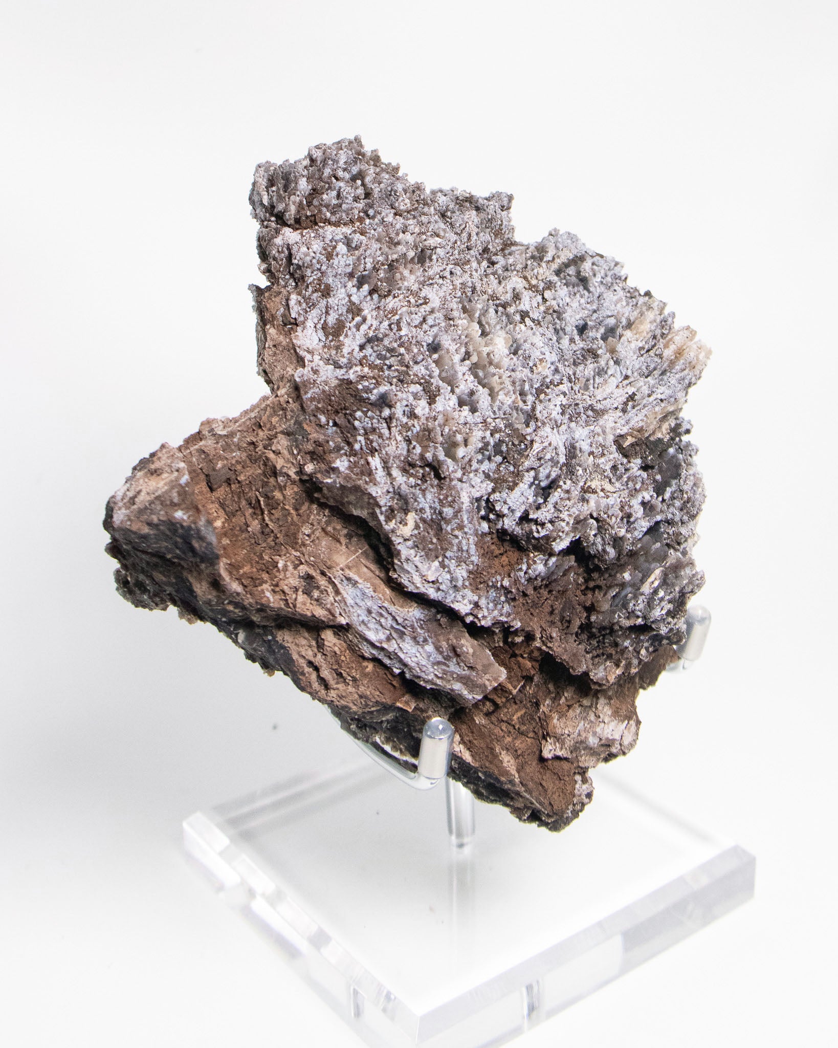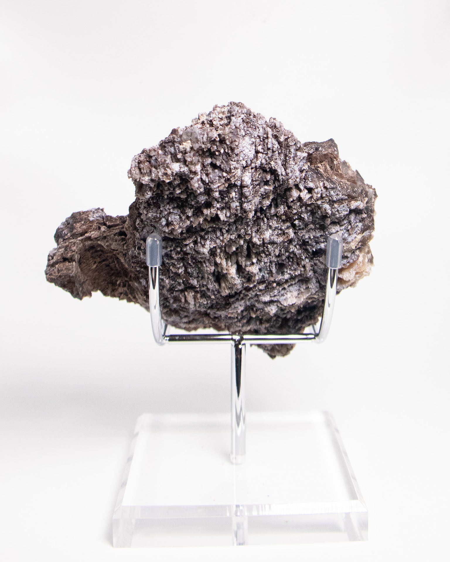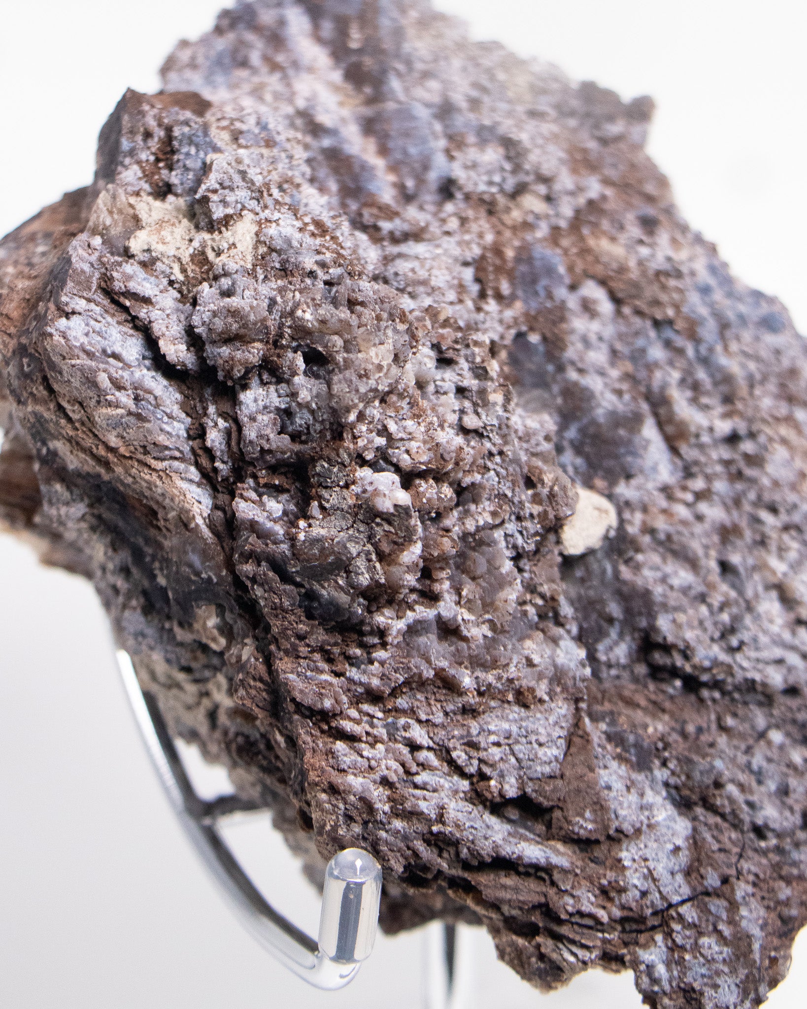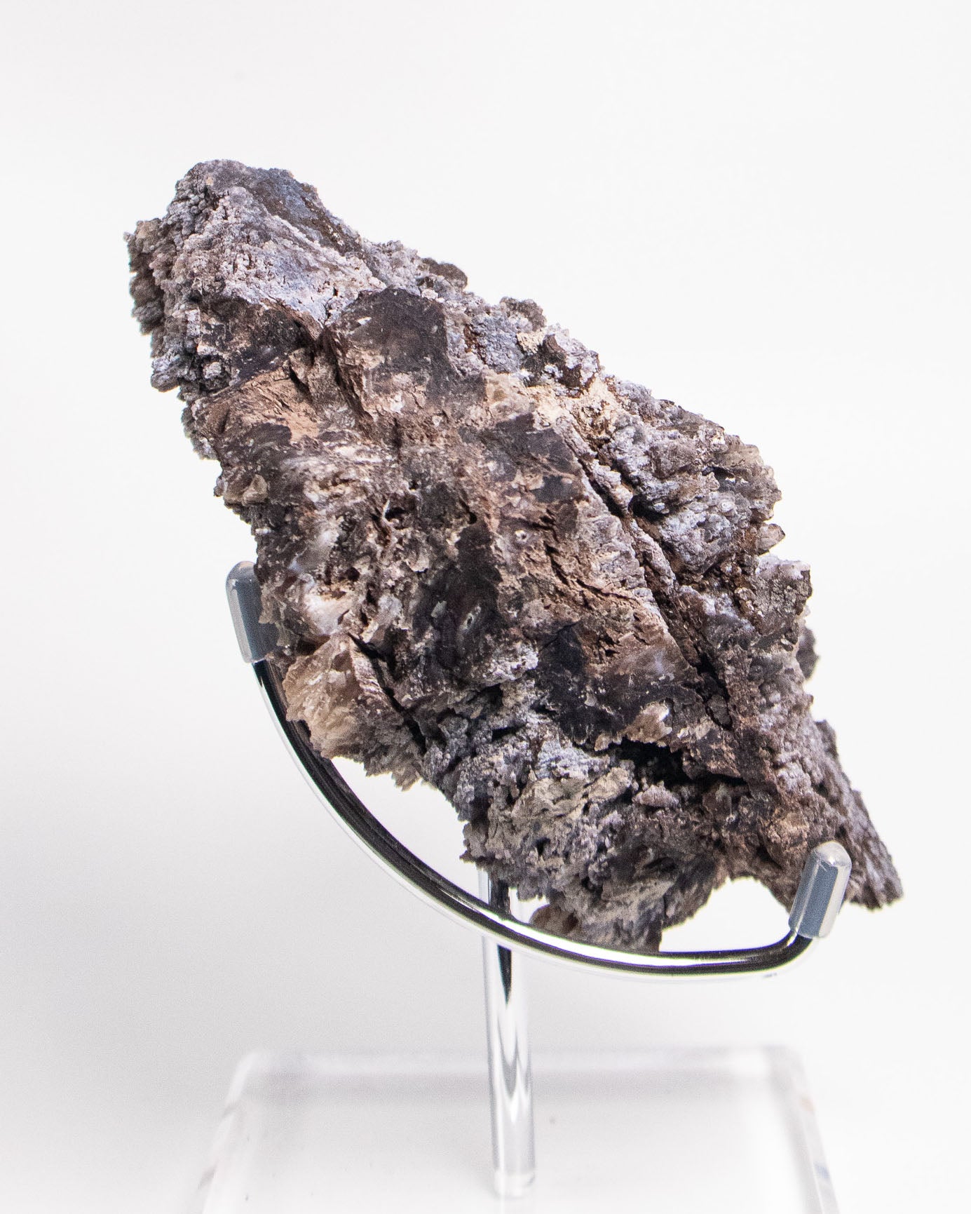 來自阿爾卑斯的木化石,屬於十分罕見的標本,經過數百萬年的礦化,矽化的木頭伴隨藍色玉髓結晶,隨著木質紋理起伏,保留了原本的生命波紋。深藍與深褐色交織出沈穩的氣質。